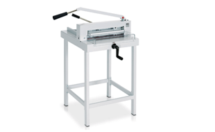 ตัดกระดาษได้หน้ากว้าง 430 มม. สามรถตัดได้ถึง 500 แผ่น (70 g/m2) หรือโบรชัวร์ที่มีขนาด 40 มม. ด้วยระบบ “SCS” ใบมีดจะทำงานเมื่อใช้มือทั้งสองในการทำงานพร้อมกัน มีฝาครอบบริเวณหน้าตัวเครื่องเพื่อป้องกันอันตรายจากระบบการตัดกระดาษเป็นแบบมือโยกส่วนใบมีดทำจาก “Solingen steel” ซึ่งมีความแข็งแรง ทนทาน กว่าใบมีดปรกติ เพราะใบมีดทำจากเหล็กที่มีคุณภาพสูงจากเยอรมัน