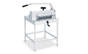 ตัดกระดาษได้หน้ากว้าง 475 มม. ความยาว 70 มม. รูปแบบการกดลงของใบมีดเป็นแบบมือโยกและรูปแบบการกดทับกระดาษเป็นแบบพวงมาลัยหมุน  มีระบบป้องกันอันตรายจากใบมีด “SCS” และใบมีดจะทำงานได้ต้แงใช้มือทั้งสองในการทำงานพร้อมกันเพราะมีระบบป้องกันใบมีดที่สามารถล็อคใบมีดเมื่อมือโยกถูกยกขึ้น ส่วนในการปรับระยะตัดจะใช้มือหมุนด้านหน้าเครื่องมีสเกล (มม./นิ้ว)ด้านหน้าเครื่องใช้บอกระยะการตัด และใบมีดทำมาจาก “Solingen steel” ซึ่งมีความแข็งแรง ทนทาน กว่าใบมีดปรกติ